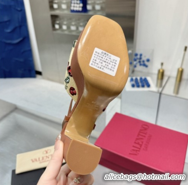 Most Popular Valentino Vlogo Signature Cherryfic Platform Sandals 11cm Jacquard Synthetic Raffia Brown 0902084