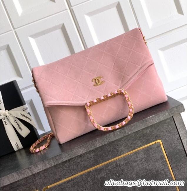 New Arrivals Chanel Quilted Suede Large Flap Handbag CH101001 Pink 2025