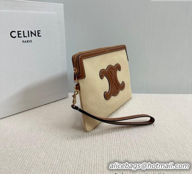 New Cheap Celine Small Pouch with Strap in Textile and Calfskin 10J502 Beige 2024