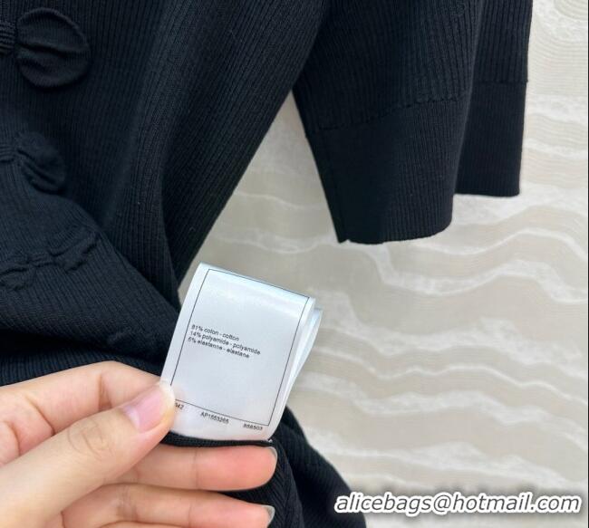 New Cheap Chanel Cotton Knit Shirt with Bow CH101510 Black 2025