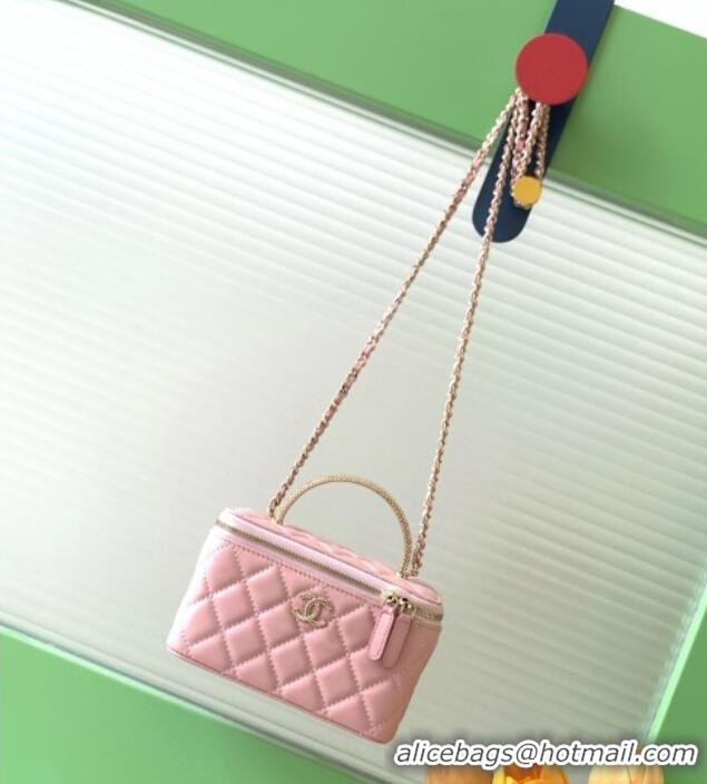 Stylish Cheap Chanel Lambskin Long Vanity with Chain and Top Handle Bag AP4842 Light Pink 2025