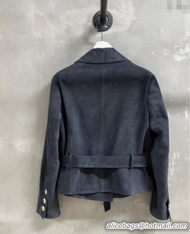 New Cheap Chanel Suede Jacket CH101505 Blue 2025