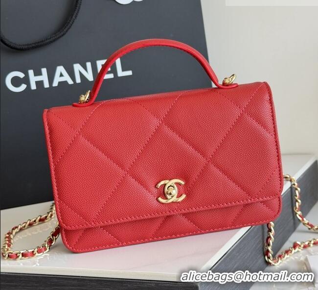 > Chanel Handbag > Chanel 2026 Bags > Top Design Chanel Wallet On Chain with Top Handle Grained Shiny Calfskin AP4931 Red 2026