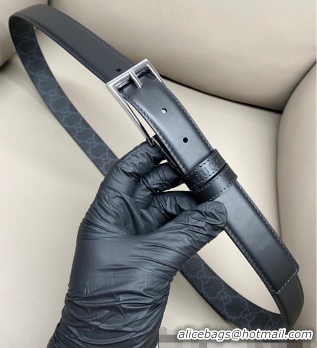 New Cheap Gucci GG Canvas and Leather Reversible Belt 3cm with Pink Buckle GG011001 Black 2025