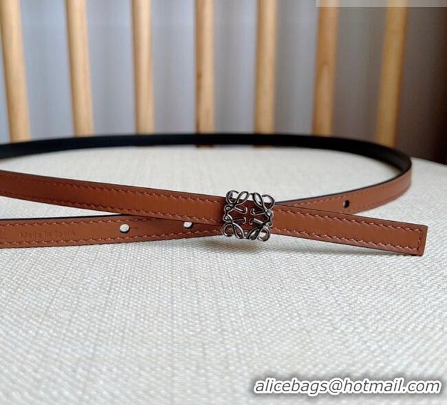 New Cheap Loewe Anagram Belt 1cm in Smooth Calfskin Leather LW091206 Brown/Silver 2025