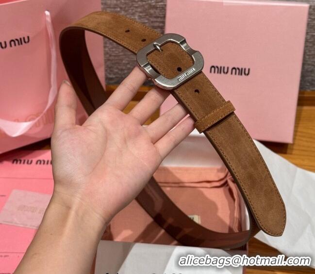 New Cheap Miu Miu Belt 3.5cm in Suede and Calfskin Leather MM26010401 Light Brown/Silver 2025