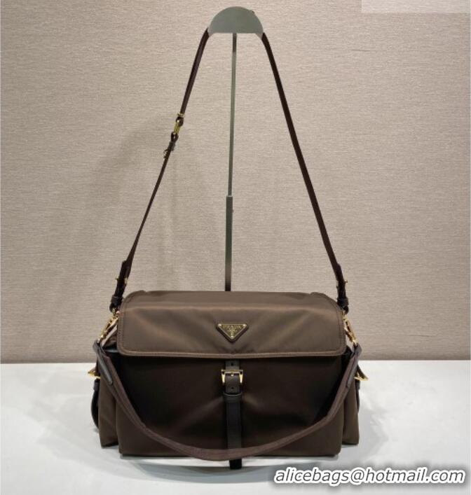 New Cheap Prada Explore large Re-Nylon shoulder bag with flap 1BD391 Sienna Brown 2026