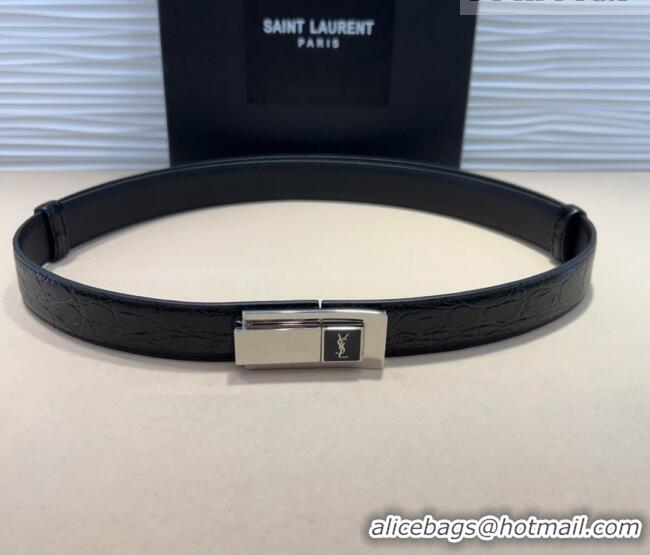 New Cheap Saint Laurent Crocodile Embossed Leather Belt 2.5cm 0317 Black/Silver 2025