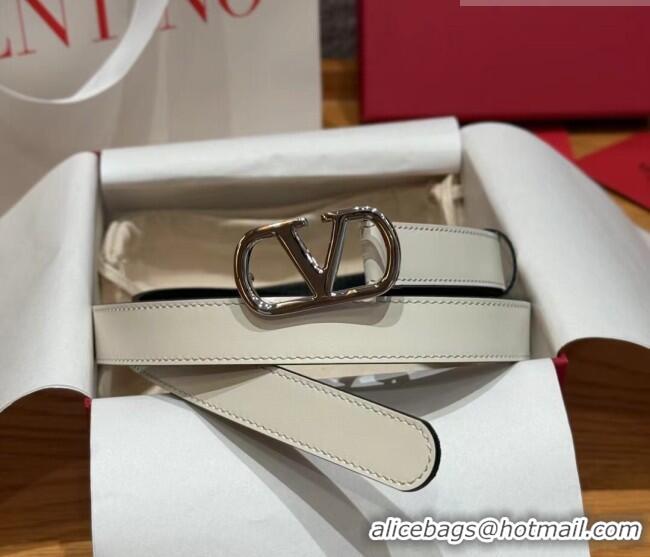 New Cheap Valentino VLogo Calfskin Leather Belt 2cm VL091201 White/Silver 2025