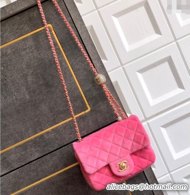 Good Quality Chanel Velvet Mini Square Flap Bag with Strass Ball AS1786 Pink 2025