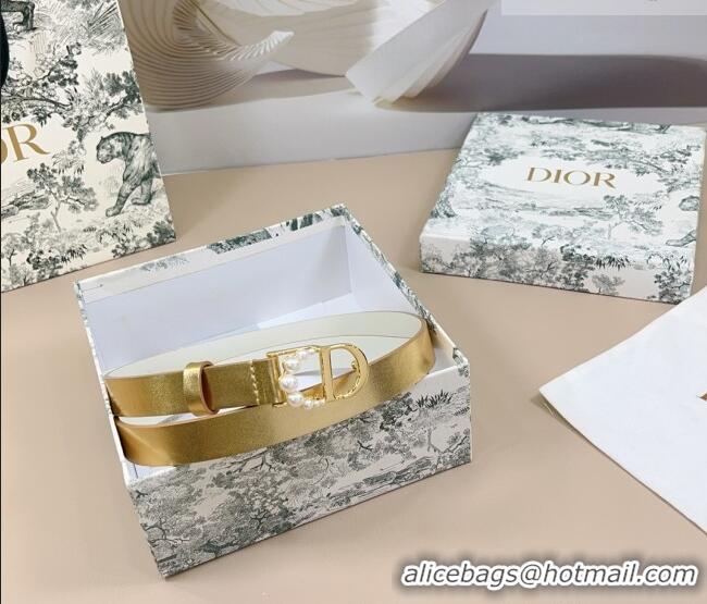 Famous Brand Dior Calfskin Leather Belt 2cm with Pearls CD Buckle 0108 Gold/White 2025