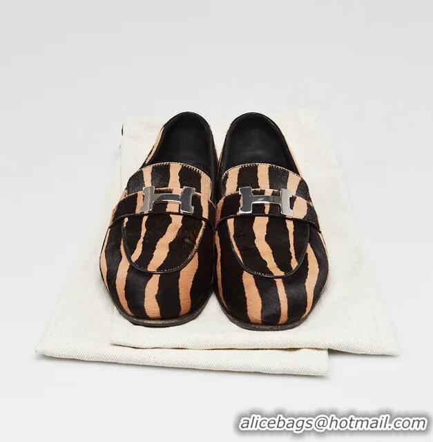 Buy Discount Hermes Paris Loafers Leopard Print Pony Hair Palladium Plated H8569