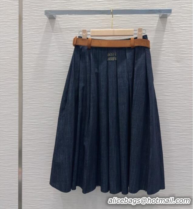 New Design Miu Miu Denim Striped Skirt MM031101 Blue 2026