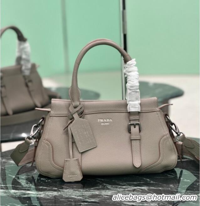 New Design Prada Large leather tote bag 1BG604 Grey 2026