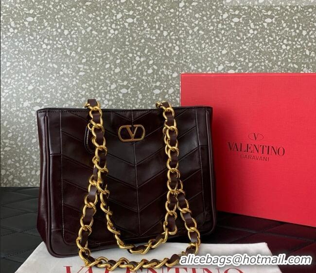 > Valentino Handbag > Best Quality Valentino Laseine Small Shopping Bag in V Shiny and Matte Nappa Leather 0082 Dark Burgundy 2026