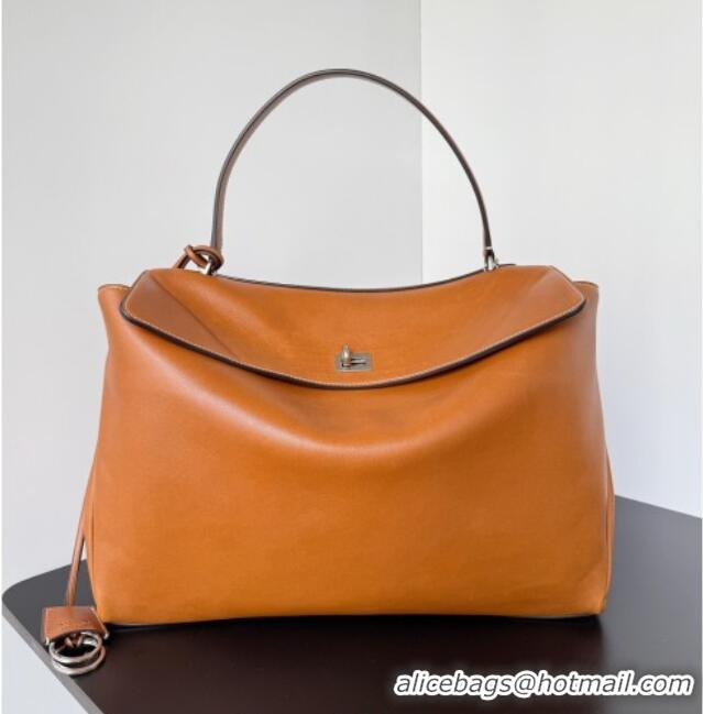 Buy Classic Balenciaga Rodeo Large Handbag in smooth calfskin 78972 brown yellow With aged-silver hardware 2025