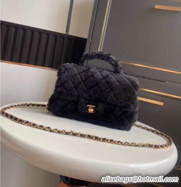 Best Product Chanel Rabbit Fur Mini Classic Handbag With Top Handle AS2431 Black 2025