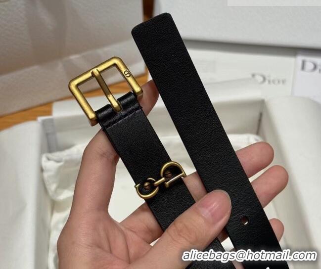 Best Quality Dior Saddle Loop Belt 2cm in Smooth Leather with CD Pin Buckle DR031705 Black/Gold 2026