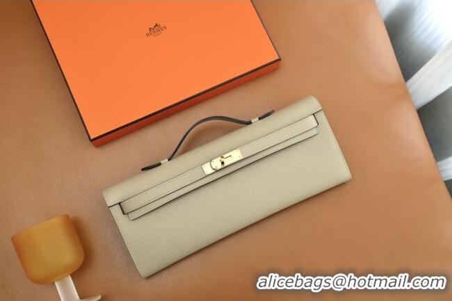 > Hermes Handbag > Hermes Clutch Bags > New Fashion Hermes Kelly Cut Clutch Bag in Original Swift Leather H0307 Trench Grey/Gold (Full Handmade)