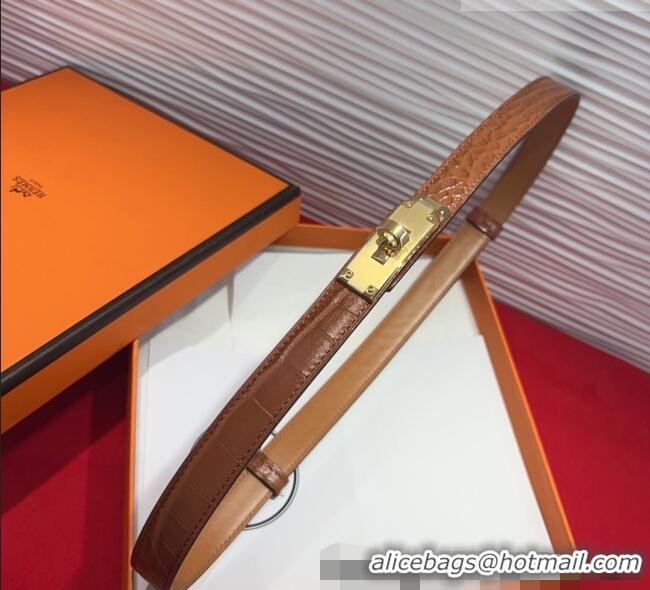 Best Product Hermes Kelly Duo Belt 1.8cm in Crocodile Embossed Calfskin with Metal-Tone Buckle H2011025 Brown/Gold 2025