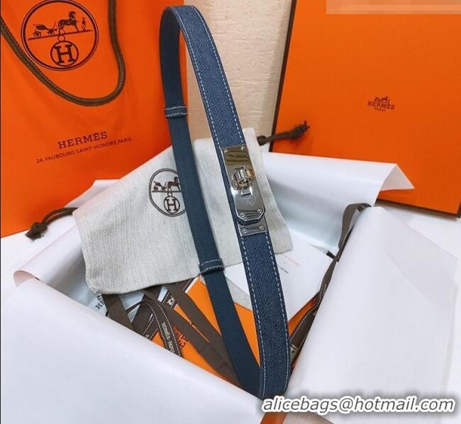 New Fashion Hermes Kelly Jean Belt 1.8cm in Denim and Epsom Leather 0314 Blue/Silver 2025