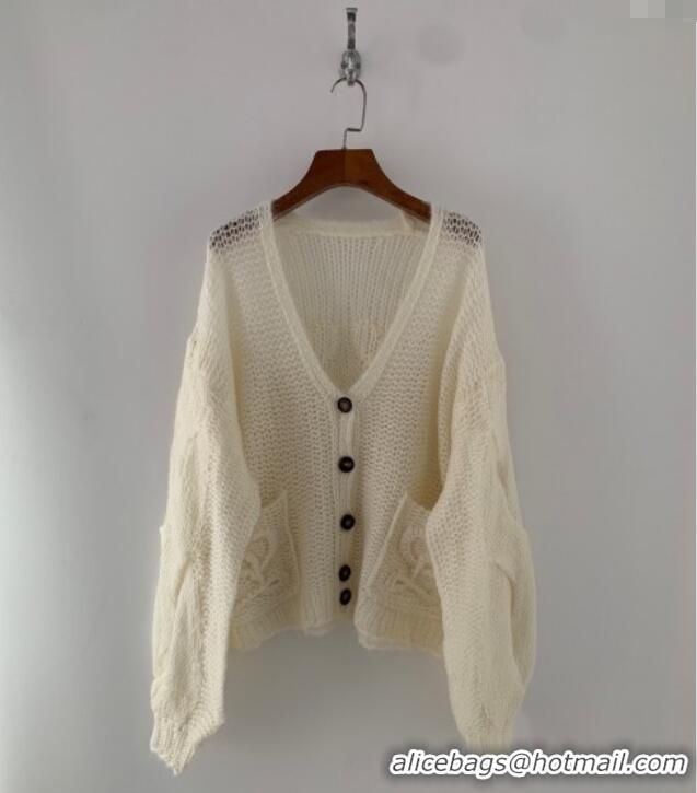 New Fashion Loewe Mohair Crochet Cardigan 0904 Ivory White 2025