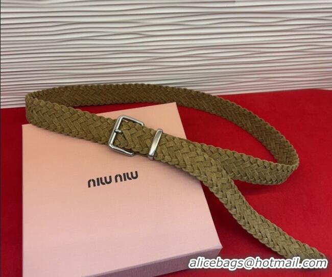 New Fashion Miu Miu Woven Suede Belt 3cm with Pin Buckle MM031701 Green 2026