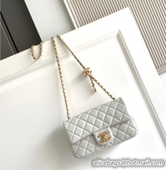 New Design Chanel Shiny Lambskin Mini Flap Bag with CC Chain AS5759 Light Grey 2025