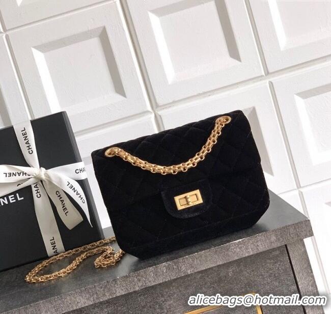 New Product Chanel Velvet Mini 2.55 Flap Handbag AS0874 Black 2025