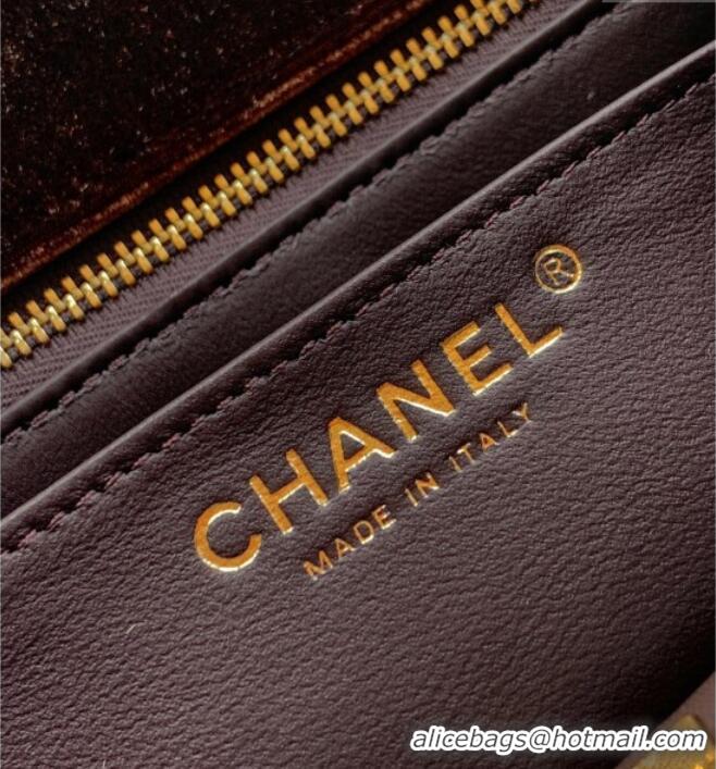 Original Cheap Chanel Velvet Mini Square Flap Bag with Strass Ball AS1786 Coffee Brown 2025