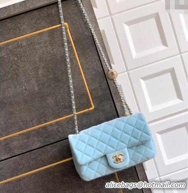 New Release Creation Chanel Velvet Mini Flap Bag with Strass Ball AS1787 Ice Blue 2025