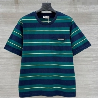 New Product Miu Miu Striped Cotton T-Shirt 30014 Green 2025