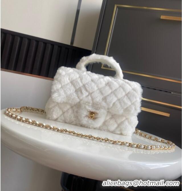 Luxury Cheap Chanel Rabbit Fur Mini Classic Handbag With Top Handle AS2431 White 2025