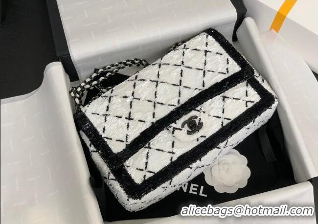 New Release Creation Chanel Sequins Large Flap Bag AS4063 Black/White 2025