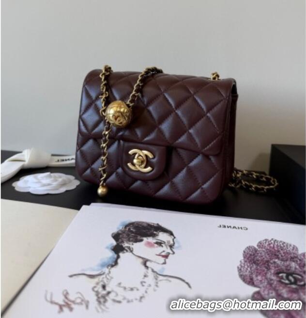 > Chanel Handbag > Chanel 2025 Bags > New Style Chanel Lambskin Mini Flap Bag with Metal Ball AS1786 Dark Burgundy 2025