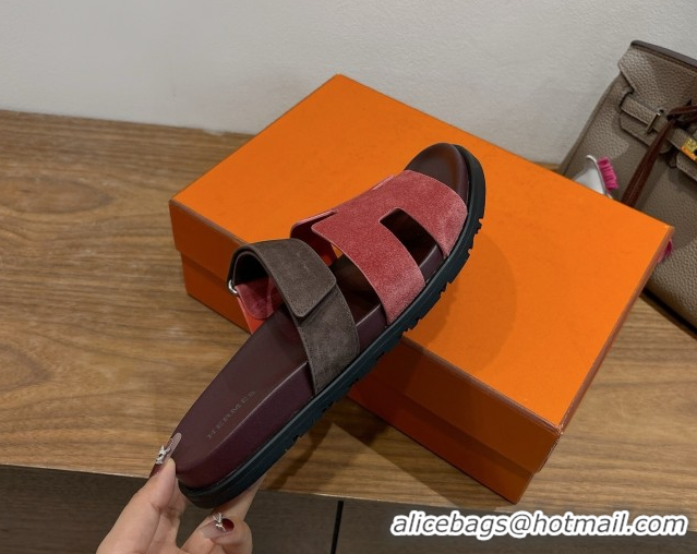 New Style Hermes Chypre Slide Sandals in Suede Pink/Brown 2025 H082008 0820077