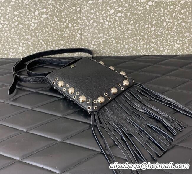 New Style Valentino Nellcote Small Shoulder Bag in Grainy Calfskin with Fringes Tassel and Ball Studs 2034 Black 2025