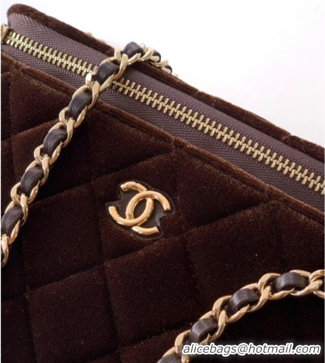 New Style Chanel Velvet Vanity Case with Chain and Strass Ball CH101007 Coffee Brown 2025