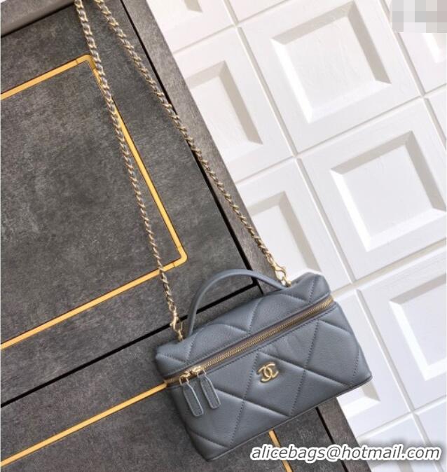 New Stylish Chanel Grained Shiny Calfskin Vanity Case with Chain and Top Handle AP4936 Steel Grey 2025