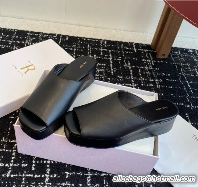 Luxury The Row Emi Flatform Sandal in Lambskin 5.5cm Heel TR1405 Black 2025