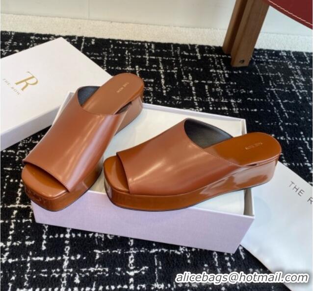 Newest 2015 The Row Emi Flatform Sandal in Polished Calfskin 5.5cm Heel TR1406 Brown 2025