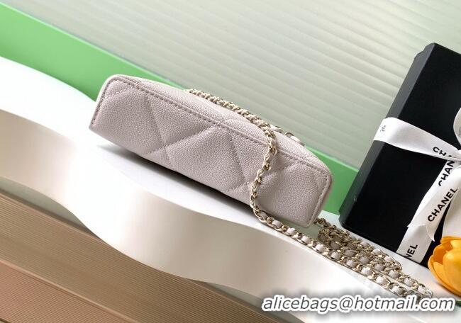 New Design Chanel Grained Shiny Calfskin Vanity Case with Chain and Top Handle AP4936 Pale Grey/Gold 2025