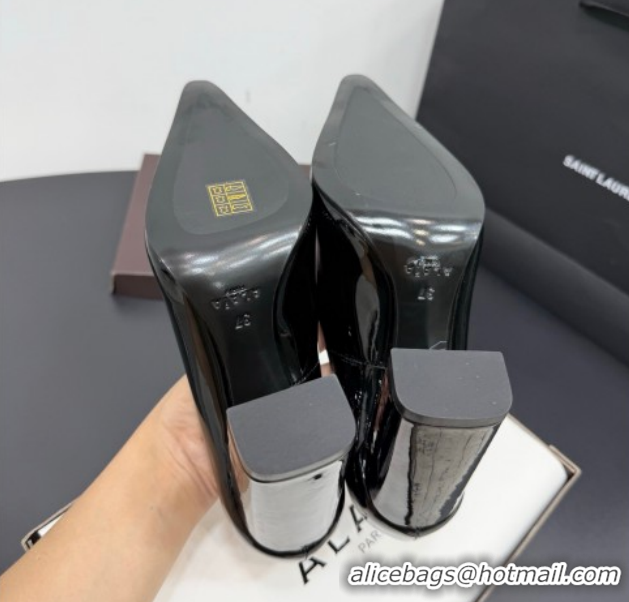 Hot Style Alaia Pointy Toe Pumps 9cm with Block Heel in Patent Leather Black 1029108