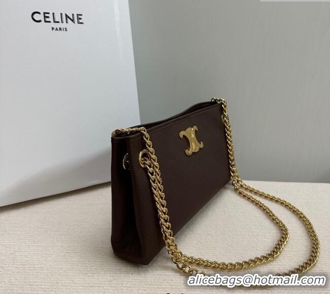 Original Cheap Celine Newspaper Chain Bag in Grained Calfskin 114253 Chestnut Brown 2025