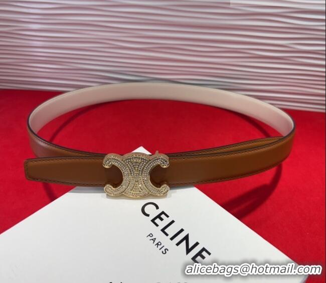 Best Price Celine Triomphe Calf Leather Belt 2.5cm with Strass Buckle CL2013025 Tan Brown 2025