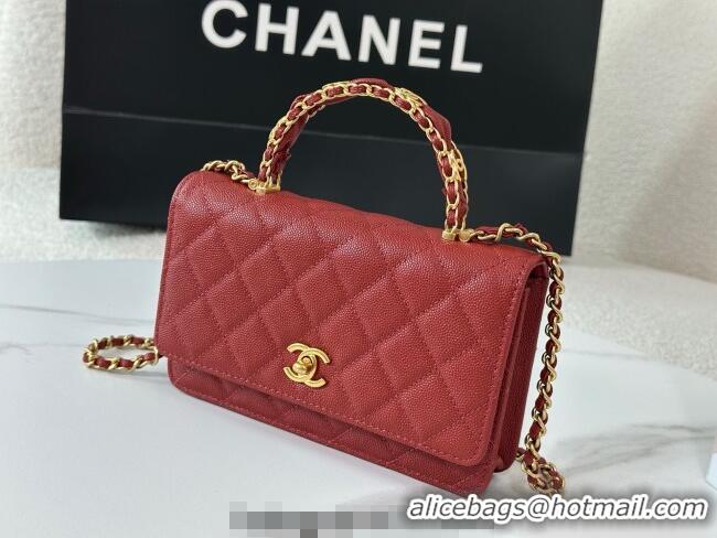 Spot Bulk Chanel Grained Shiny Calfskin Wallet on Chain with Top Handle WOC AP4785 Red 2025