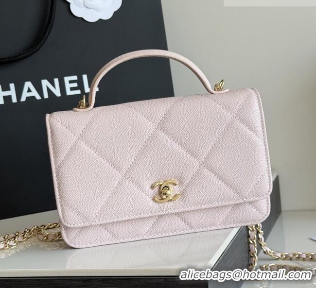 Well Crafted Chanel Wallet On Chain with Top Handle Grained Shiny Calfskin AP4931 Light Pink 2026