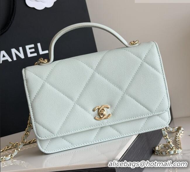 Your Position: Home > Chanel Handbag > Chanel 2026 Bags > Original Cheap Chanel Wallet On Chain with Top Handle Grained Shiny Calfskin AP4931 Light Blue 2026