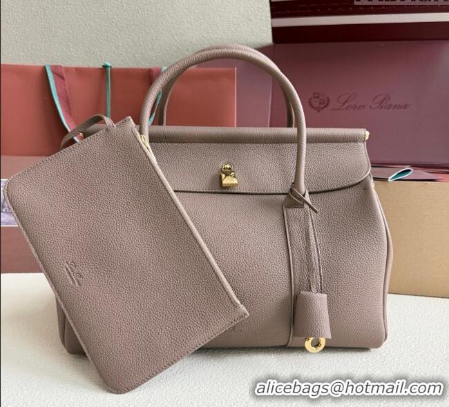 Original Cheap Loro Piana Loom Top Handle bag L32 in Grained Calfskin Leather 0925 Rock Grey 2025