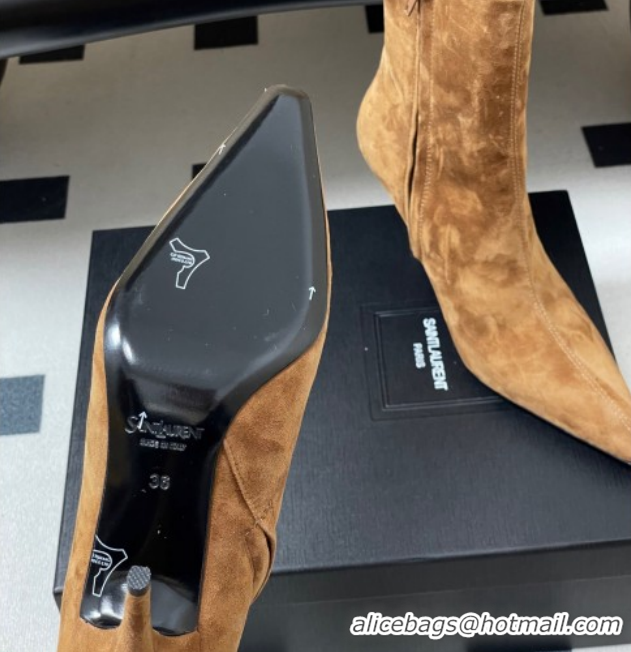 > Shoes Plaza > Yves Saint Laurent Shoes > Original Cheap Saint Laurent Ashley Heel Booties 9.5cm in Suede Brown 1213030